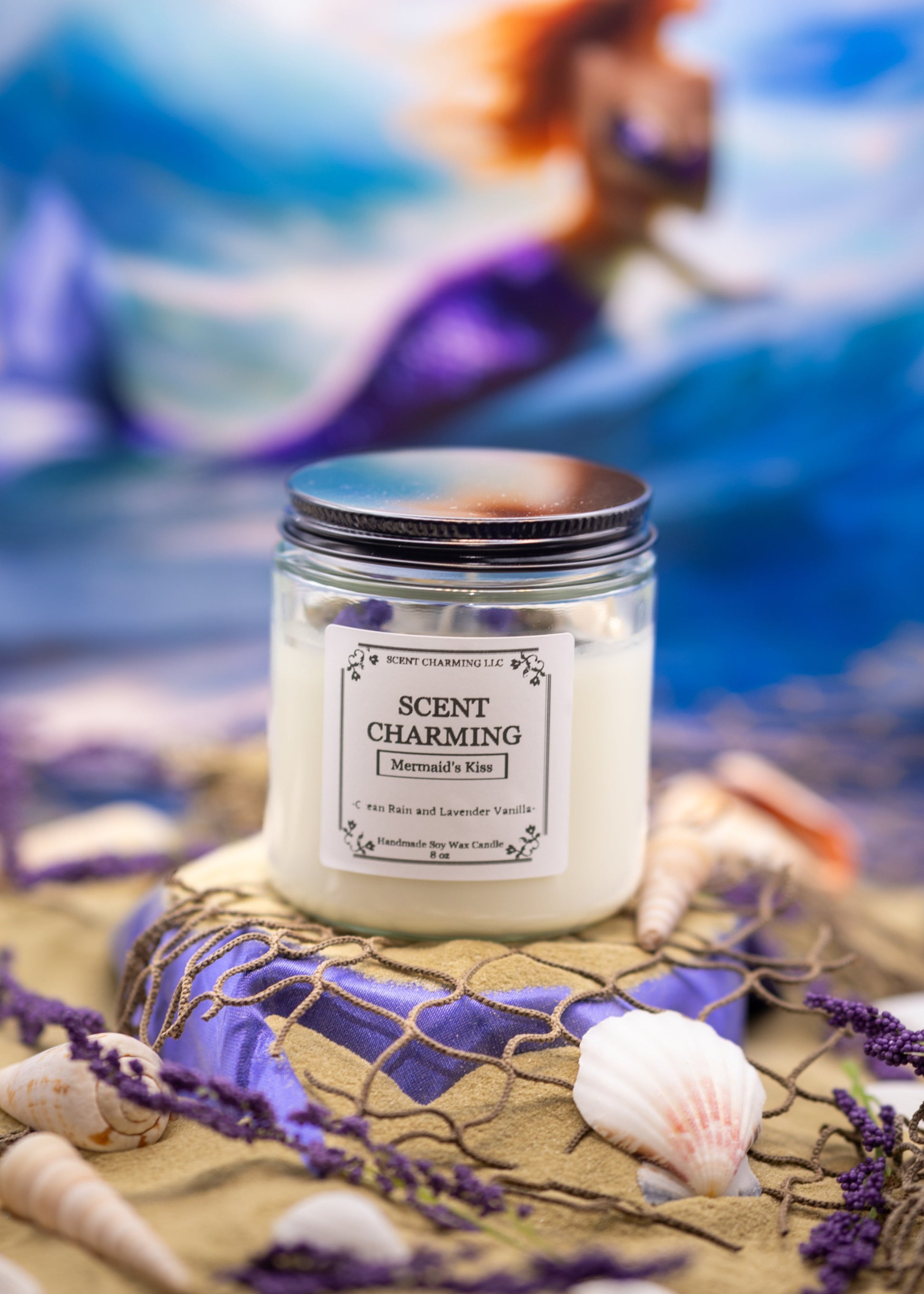 Discover the enchanting allure of our Mermaid's Kiss candle, a whimsical blend that evokes the magical essence of mermaids and the wonders of the sea. It opens with delicate floral notes of lavender, setting a calming ambiance perfect for romantic seaside moments. The heart features floral and lily, infused with crisp sea salt and zesty orange, capturing the beauty and mystery of coastal adventures. A warm vanilla base, complemented by soft rose, provides a soothing finish. Light the Mermaid's Kiss candle to fill your space with a captivating fragrance that inspires dreams of ocean romance and enchanting escapades.