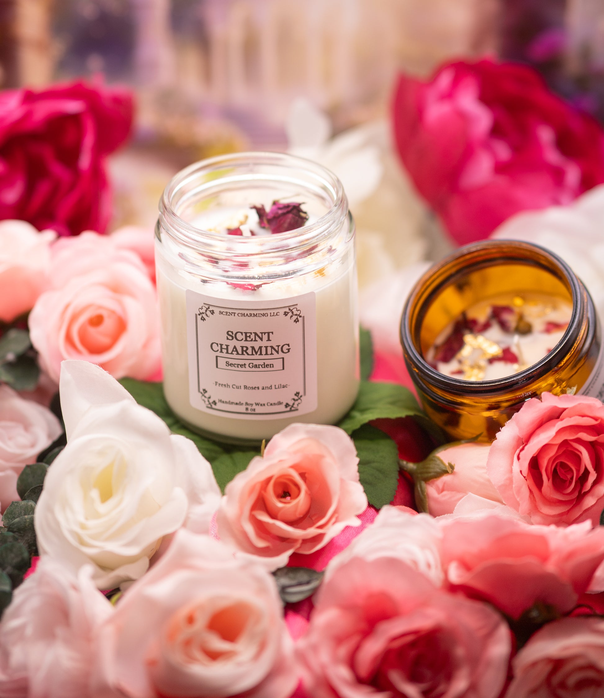 Discover the allure of our Secret Garden candle, a fragrant escape into a hidden floral paradise. It opens with fresh-cut roses, vibrant greenery, delicate lily, and zesty bergamot, creating an enchanting bouquet. The heart reveals luxurious rose, lilac petals, and tulips, enveloping you in lush blossoms. Grounded by warm woods, musk, cedar leaf, and vetiver, this candle evokes a serene retreat. Light the Secret Garden candle to transform your space into a whimsical haven, where floral aromas inspire joy and serenity.
